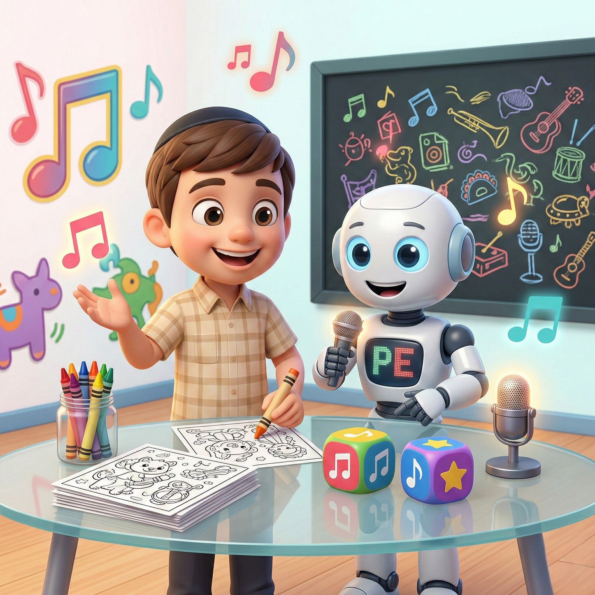 הילד צובע את יוני ובובי - וממשיך לחיות את ההרפתקה גם אחרי ההאזנה.